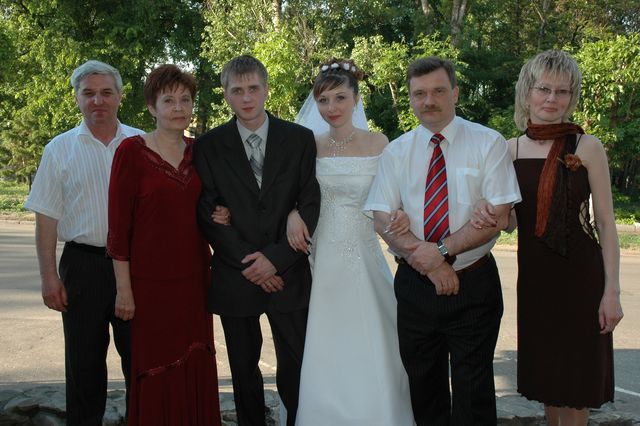 на первом фото слева направо:мой папа,моя мама(которой уже нет),мужжж Максим,Я,отец мужа,мать мужа ))